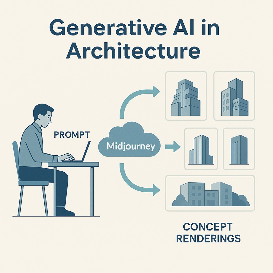 Example: Generative AI can rapidly visualize designs. Architects now use tools like Midjourney to generate concept renderings in seconds, iterating on ideas that meet project parameters.